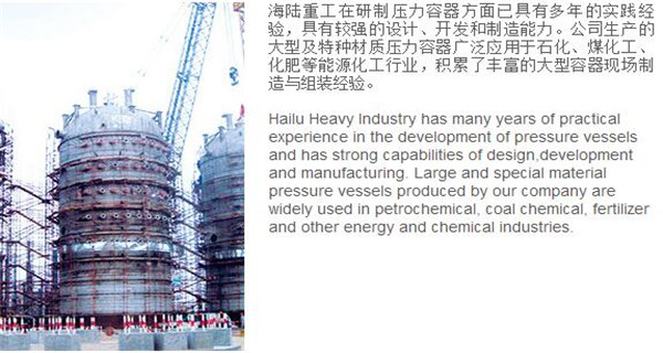 蘇州海陸重工股份有限公司位于江蘇省張家港市開發(fā)區(qū),是國內(nèi)一流的節(jié)能環(huán)保設(shè)備的專業(yè)設(shè)計(jì)制造企業(yè),目前并已初步形成鍋爐產(chǎn)品、大型壓力容器、核電設(shè)備、低溫產(chǎn)品、環(huán)保工程共同發(fā)展的業(yè)務(wù)格局。公司創(chuàng)建于1956年,注冊資本51640萬元,占地面積近50萬平米。公司下設(shè)八個(gè)控股子公司,一個(gè)余熱鍋爐研究所,在瑞士、北京、武漢、南京、上海、杭州、廣州等地設(shè)立分支機(jī)構(gòu),擁有雄厚的研發(fā)實(shí)力。公司秉承“科技領(lǐng)航、業(yè)界先鋒”的發(fā)展理念,注重研究廢熱、余熱利用和環(huán)境保護(hù)相結(jié)合的新技術(shù)研發(fā),自主設(shè)計(jì)能力居同行前列;公司承擔(dān)過國家863計(jì)劃,江蘇省科技成果轉(zhuǎn)化專項(xiàng)資金,榮獲國家科技進(jìn)步二等獎,產(chǎn)品擁有核心自主知識產(chǎn)權(quán)并取得專利50多項(xiàng);公司推行國際先進(jìn)的管理體系標(biāo)準(zhǔn)和認(rèn)證,擁有 A級鍋爐制造許可證,A1、A2、A3級壓力容器設(shè)計(jì)和制造許可證,取得了民用核承壓設(shè)備制造資格許可證、美國機(jī)械工程師學(xué)會(ASME)“S”、“U”鋼印,通過了ISO9001質(zhì)量體系認(rèn)證、健康體系認(rèn)證和14000環(huán)境體系認(rèn)證;公司設(shè)備先進(jìn),裝備精良,專業(yè)嚴(yán)謹(jǐn)?shù)闹圃炖砟畲蛟斐銎焚|(zhì)非凡、質(zhì)量一流的“海陸”品牌聲譽(yù)。
